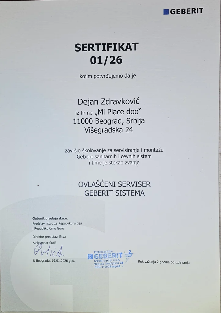 Sertifikat ovlašćenog Geberit